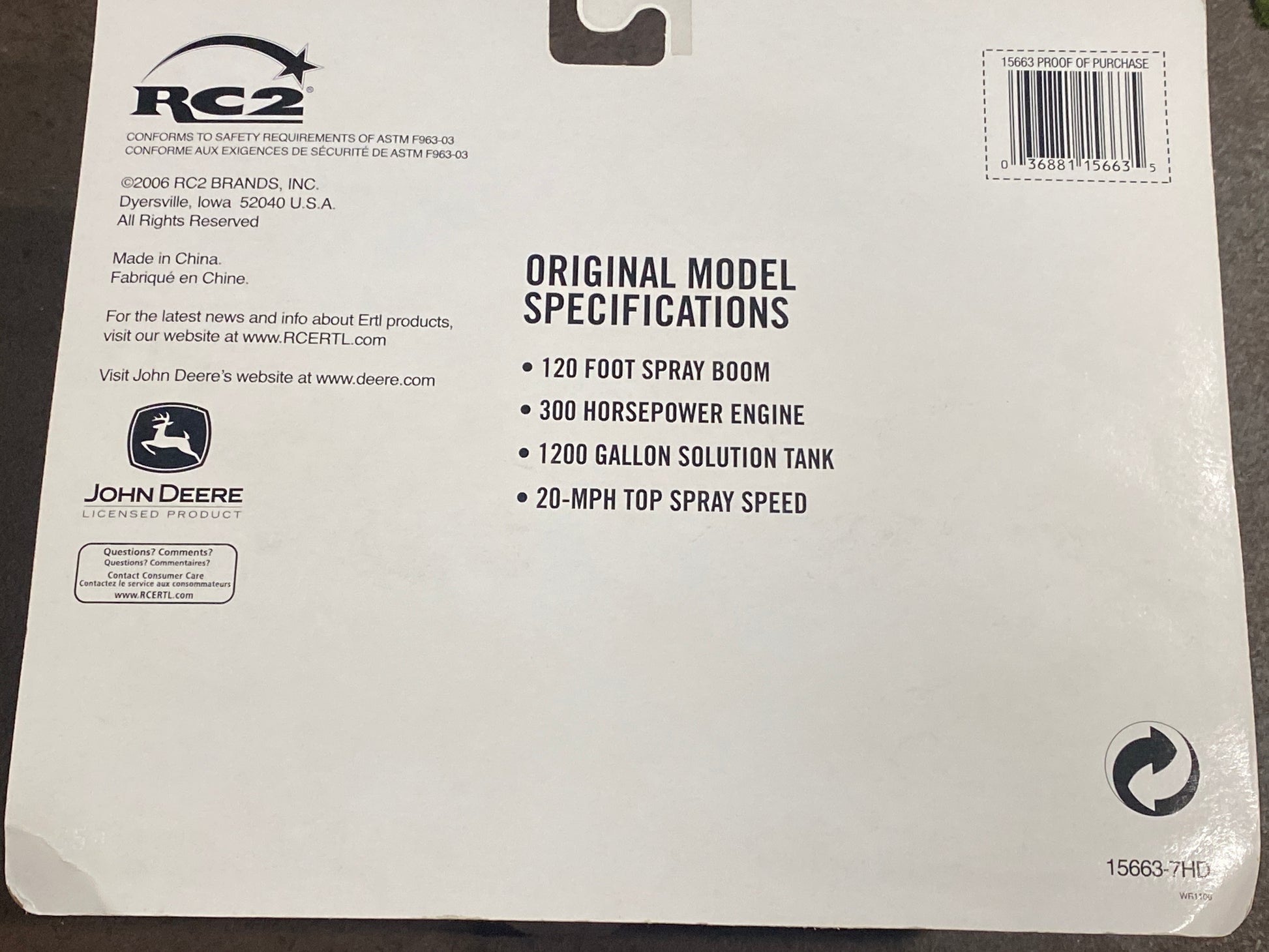 New in package John Deere 4920 Sprayer 1/64 scale